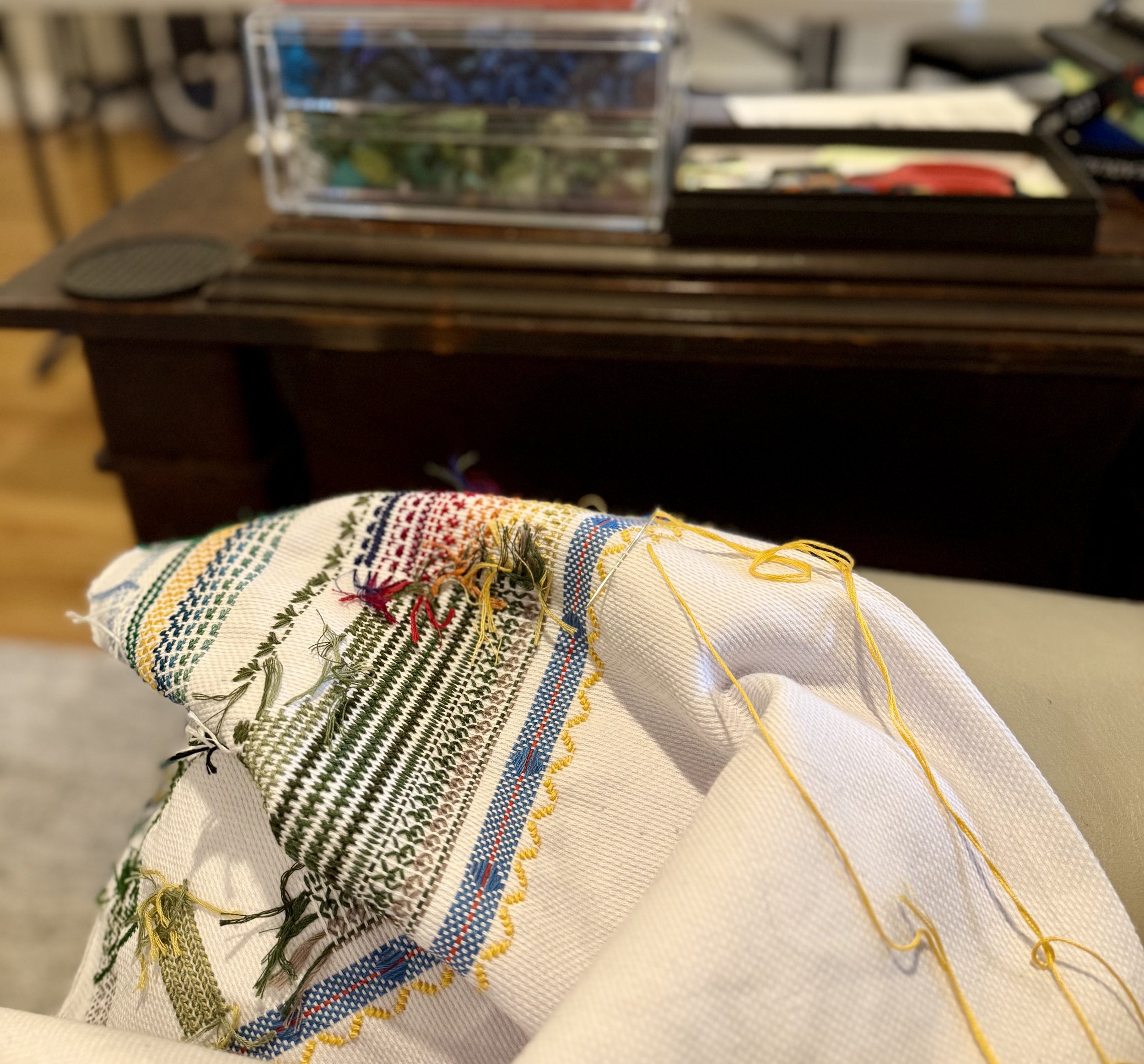 On another table, embroidery has made its way back into my days.